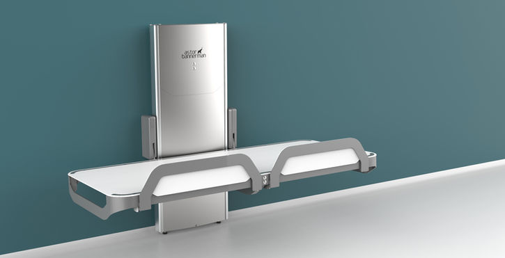 The CTX2-CP, an electric height-adjustable wall-mounted table, is intended for showering and changing adults with special needs.